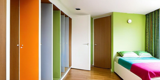 Книжные стеллажи, диваны и шкафы могут выступать в роли перегородок. Например, высокий шкаф может отделить спальное место родителей от детской игровой зоны.